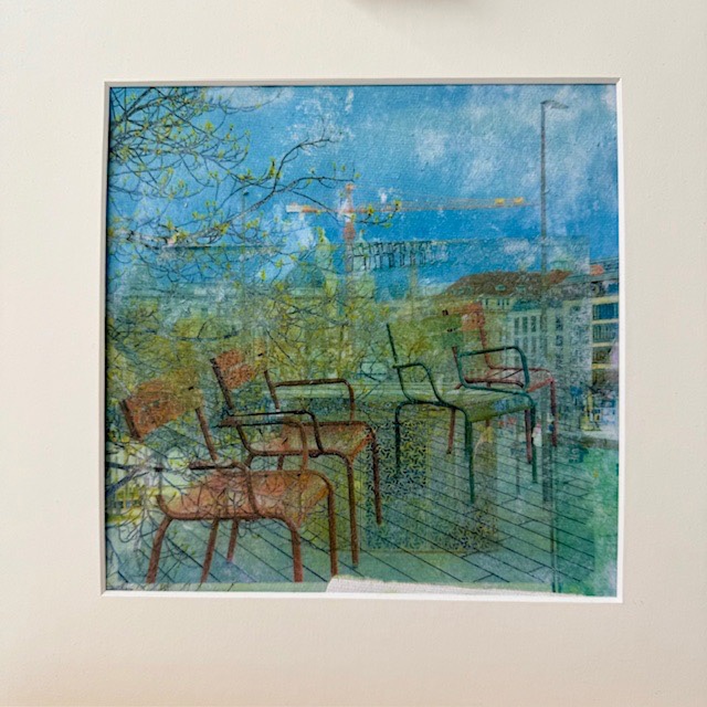 Sie arbeitet bevorzugt mit Acryl auf Leinwand, oft in grossen Formaten. Die Farben setzt sie klar und leuchtend nebeneinander. Auf ihren Reisen fotografiert sie viel; diese Bilder werden später zu Ausgangspunkten für grosszügige, farbintensive Landschaften. Immer wieder erkundet sie neue Techniken – zuletzt die Bild- und Fototransfertechnik sowie Collagen in kleinen Formaten.